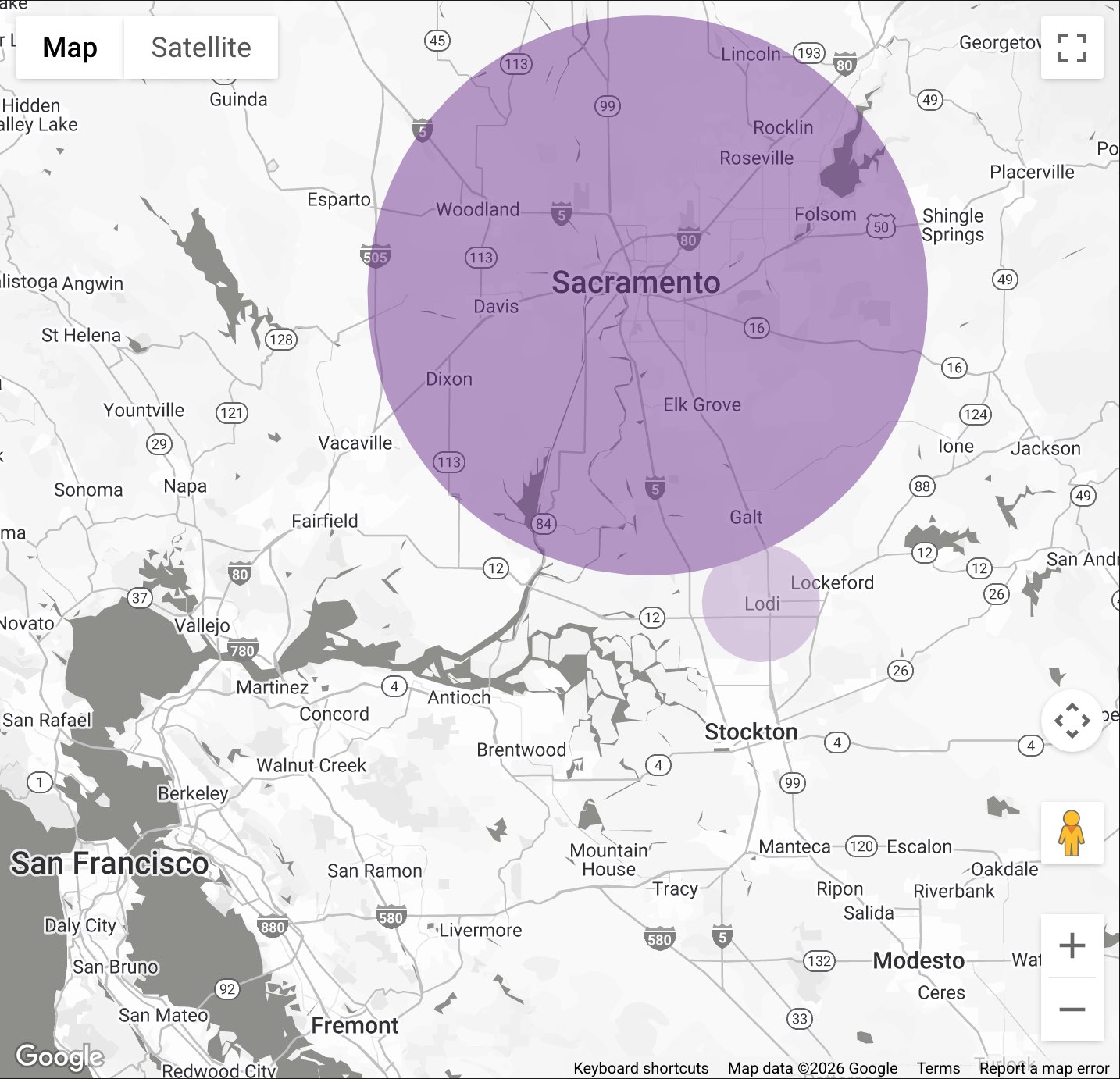 Nexus will deliver to all of the Sacramento California metropolitan area and surrounding cities as far as: Dixon, Woodland, Lodi, Galt, El Dorado Hills, and Lincoln.