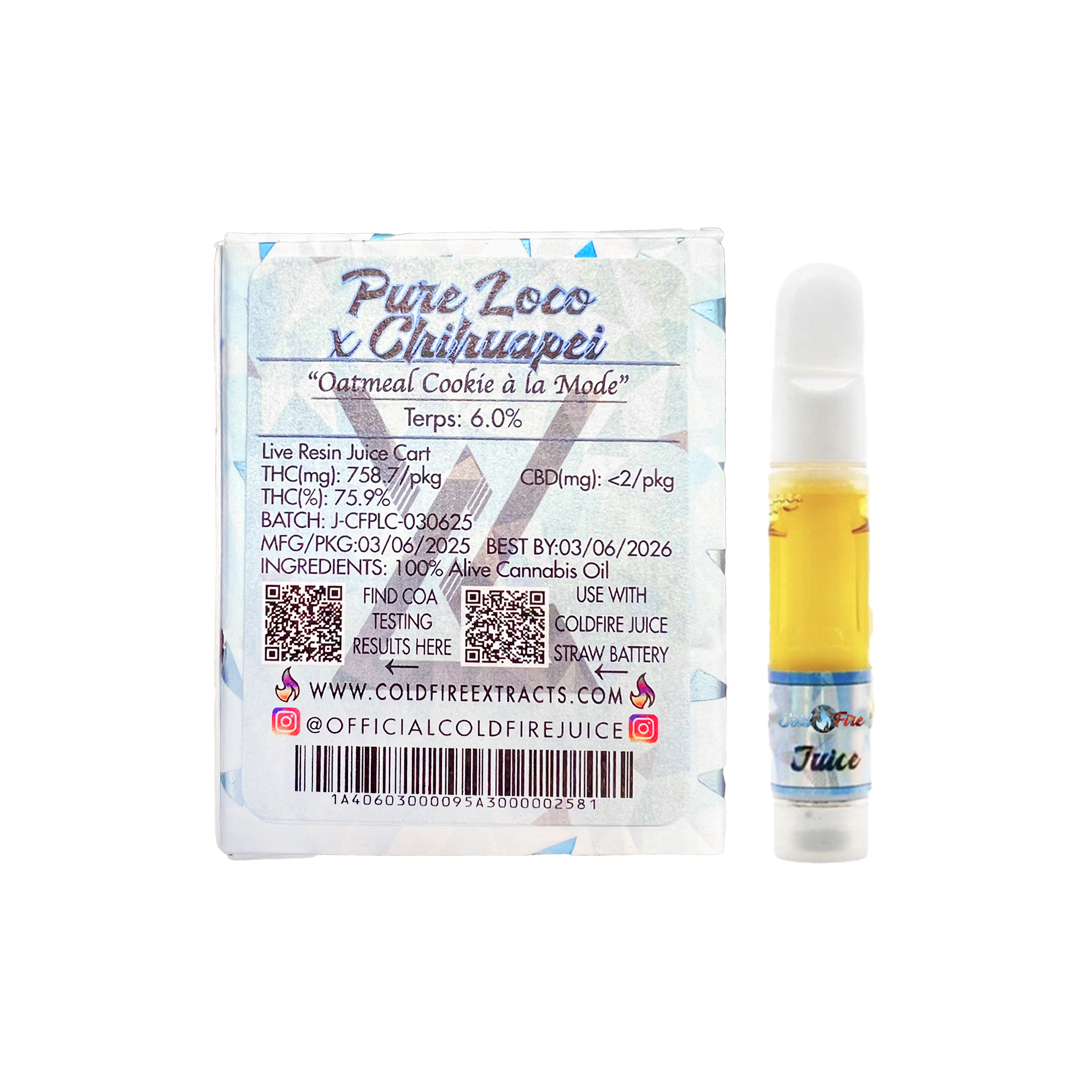 Most Flavorful Cured Vape Cart in the World. Just Flavor and Potency. No Distillate No Additives No Degradation Experience the truest flavor you’ve ever had in a vape cart with the ColdFire Juice Line. Typically over 5% terps! Experience a 3 Star Michelin Meal with ColdFire Exclusive! 💐California’s Most Aromatic Cannabis💐 ❄️Extracted Below -100°❄️ 👨🔬Expertly Preserved👨🔬 🗣“Flavor Speaks Louder Than Words”🗣