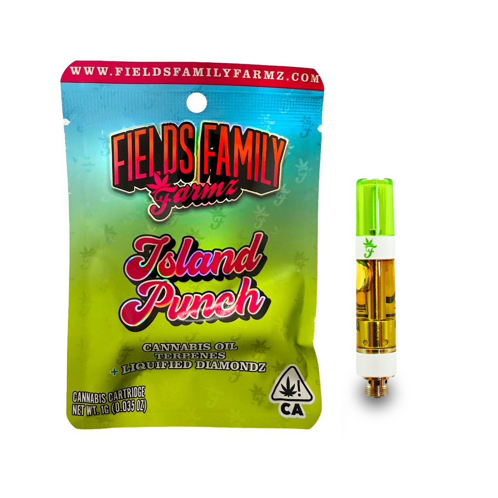 Island Punch is a slightly indica dominant hybrid strain (55% indica/45% sativa) created through crossing the potent Gorilla Glue #4 X Purple Punch (reversed) strains. This strain has a sweet and fruity sugary berry flavor accented by sour citrusy lemon and tropical fruits. The aroma is of fresh tropical citrus accented by sugary flowers and a hint of fruity cherries.