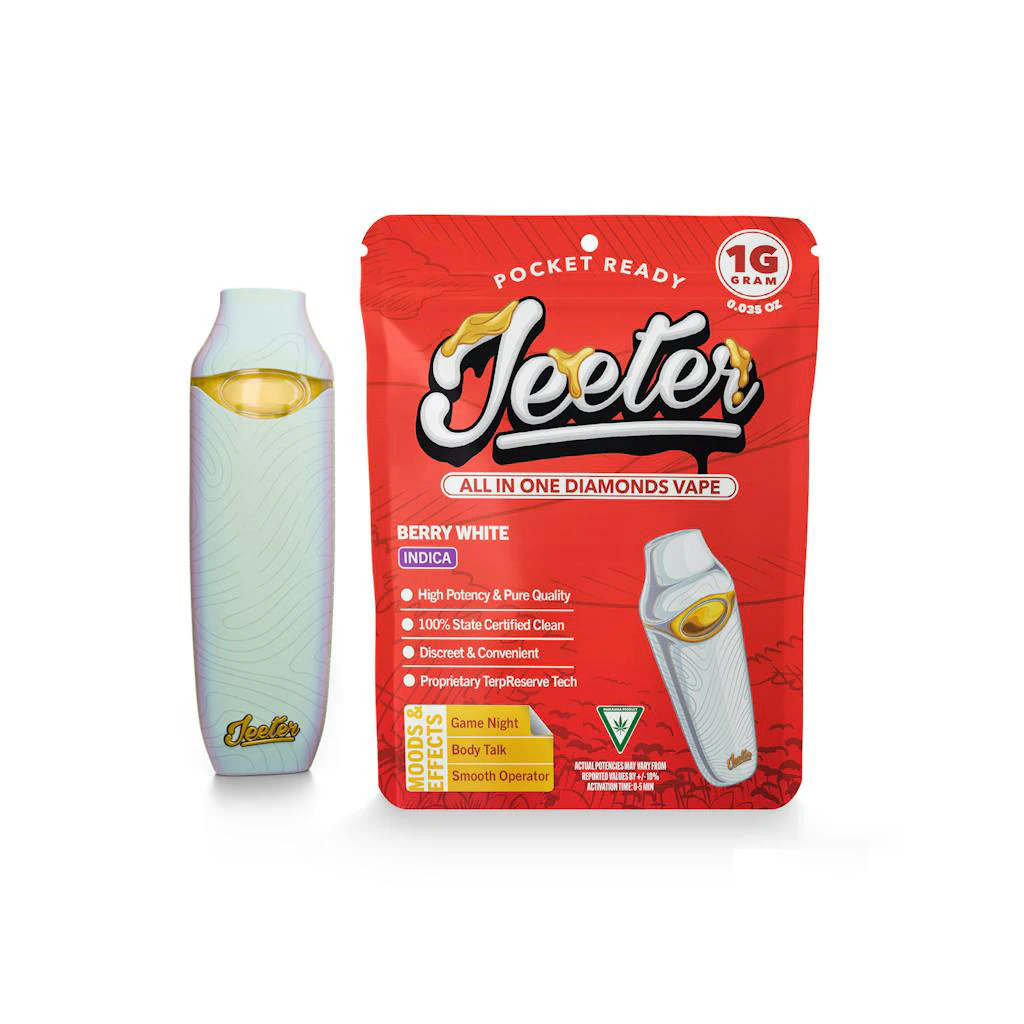 Berry White is an Indica strain with an assortment of berry flavors like blueberry & strawberry complimented with extra citrus notes and light earthiness tones. With a relaxed yet alert high, Berry White is not only an iconic artist but the perfect strain for a mid-day break. Throw some Barry White on and light up a Berry White Jeeter for a cheat code on Vibes.