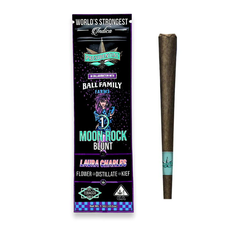 Your Presidential Blunt consists of Craft Indoor Flower Cultivated by the Legends of Living Soil, Ball Family Farms. The flower is then infused with Premium Distillate, using Presidential's Proprietary Infusion Process that enables us to permeate the flower to the stem. Finally, it is coated in the highest quality Kief. Bringing the culture, the strongest most flavorful Moon Rocks on the planet earth. Ground and rolled in a 100% Tobacco Free Blunt for your Enjoyment! Presidential is committed to creating the most innovative, highest quality cannabis products guaranteed to deliver a reliable and consistent dose with each use.