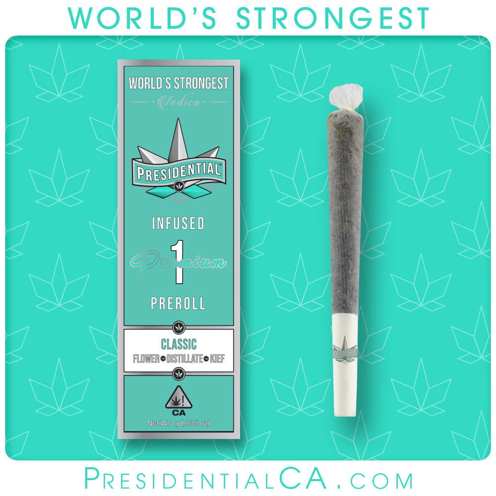 Your Presidential Preroll consists of Top-Shelf Organic Flower INFUSED with Premium Clear Distillate, then Coated in the Highest Quality Kief. Our innovative proprietary infusion process allows us to permeate the flower all the way to the stem.