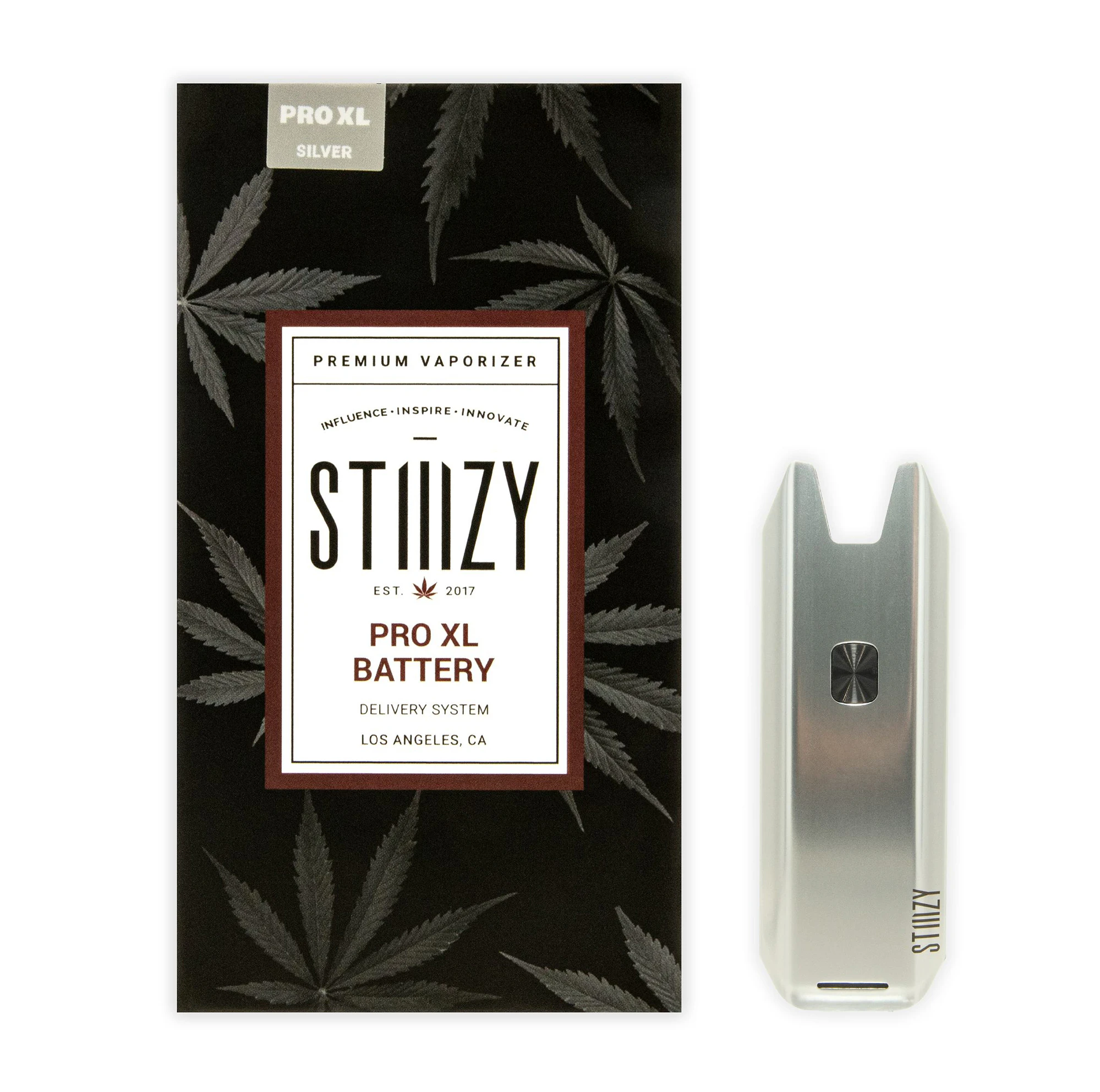 Experience the future of THC delivery with the STIIIZY Pro XL. This cutting-edge proprietary vape battery features adjustable voltage settings, allowing you to tailor your experience to perfection with more power and battery life. Designed with discreetness, portability, and convenience, the STIIIZY Pro XL is revolutionizing cannabis delivery systems. Elevate your experience with STIIIZY's innovative and inspiring technology. // *Not compatible with Portable Power Case. // *Pods sold separately