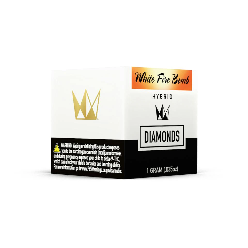 White Fire Bomb Diamonds are a cutting-edge Hybrid mix of spicy-sweet terpenes and psychoactive cannabinoids. Large, chunky, crystal-clear, and coated with an amber strain-specific terp sauce, the flavor expresses explosive traits of candied-earth when dabbed. Sit down, strap in, and get ready for its effects! Introspective and exhilarating, the high from these diamonds allows for greater mindfulness and enjoyment of those special moments.